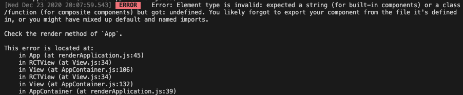 Error: Element type is invalid: expected a string (for built-in components) or a class/function (for composite components) but got: undefined. You likely forgot to export your component from the file it's defined in, or you might have mixed up default a..