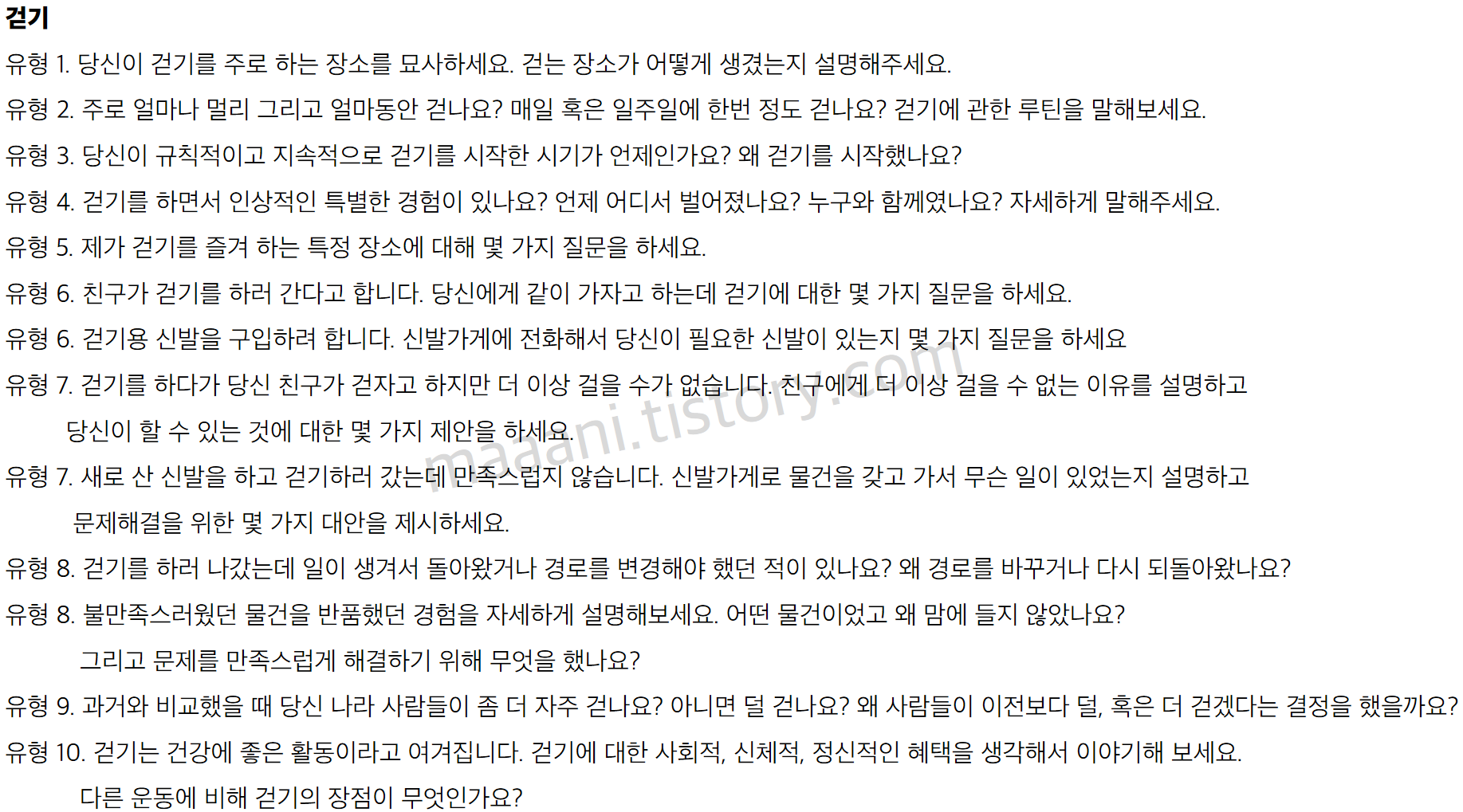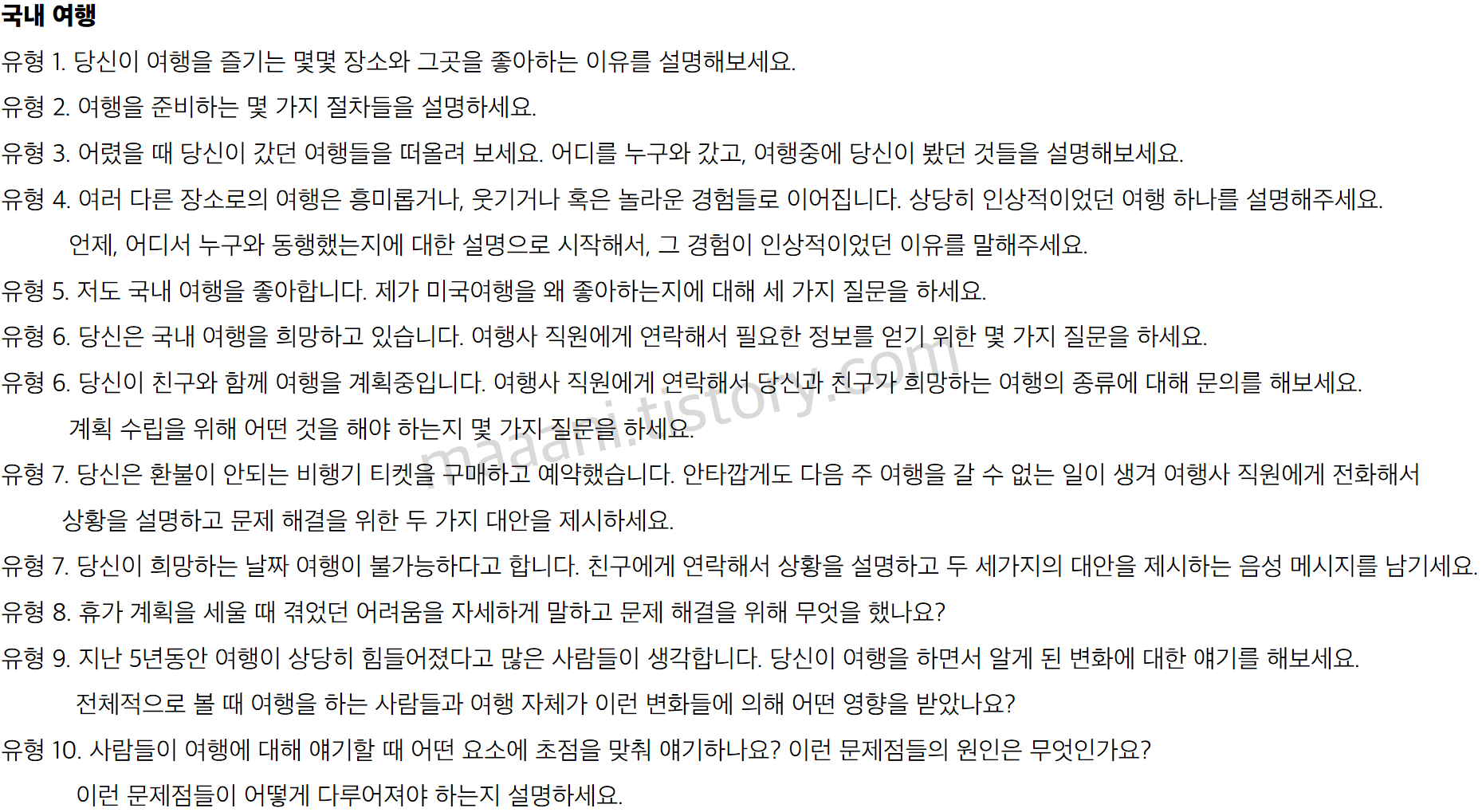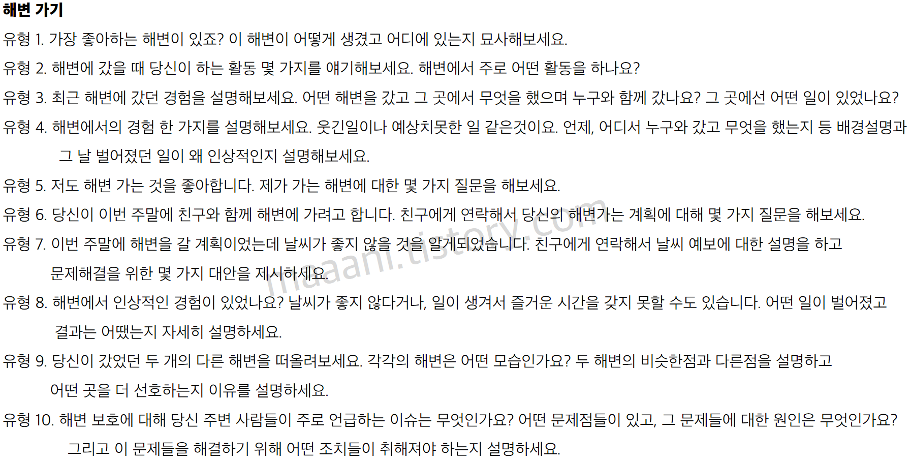 각 문제들을 보면서 핵심 키워드, 썰 생각, 말하고싶은 표현 찾아보고 숙지